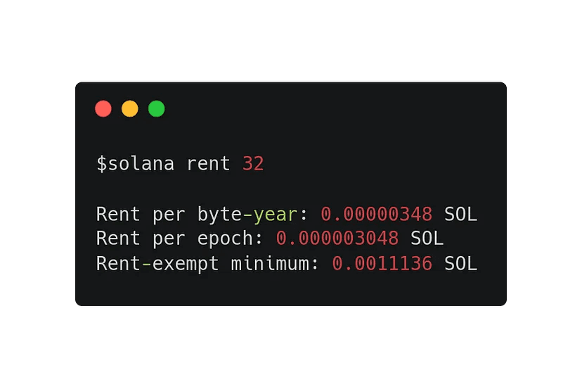 Solana rent < account size in bytes >